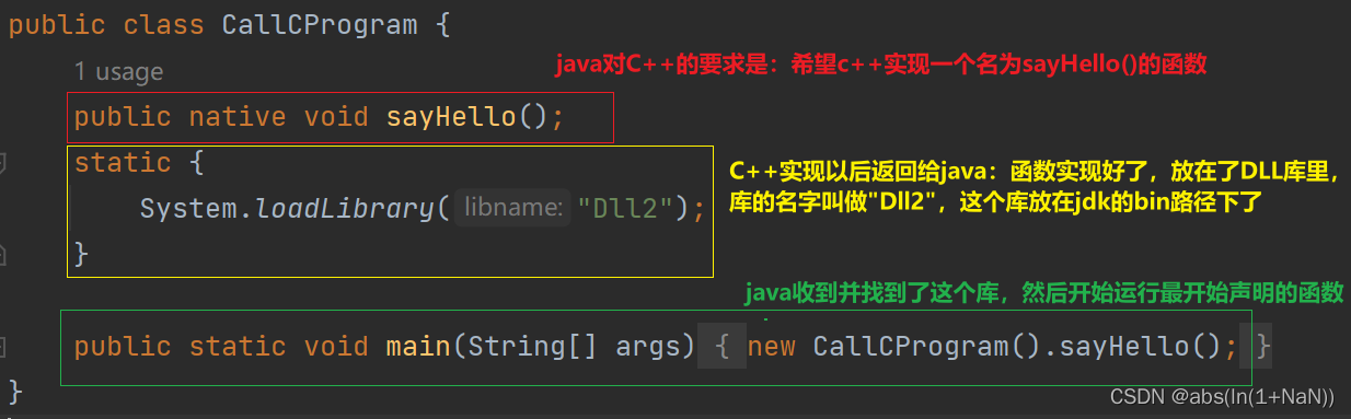 下面我们先了解不带返回值是如何实现的,至于带返回值,可以参考下面这位博主的博客,他列举出了各种情况的函数返回值java调用c++带返回值_旭旭_哥的博客-优快云博客