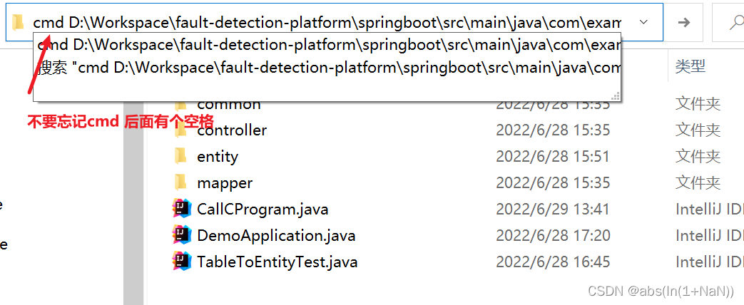 并在上面路径的开头输入 cmd,这样的话,进入命令行以后就可以直接跳转到这个路径了