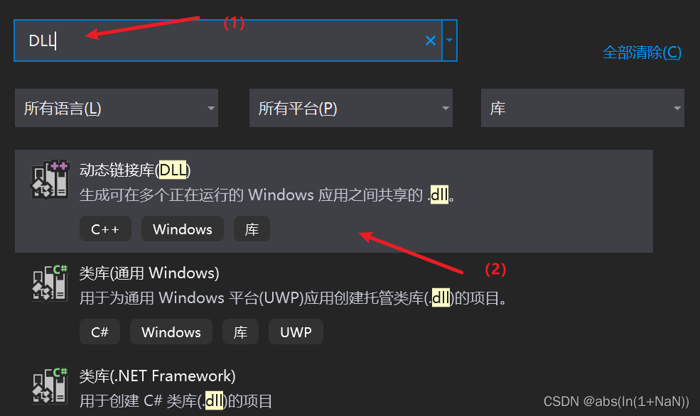 由于java要求我们生成的库是Dll2.dll,所以我们新建的工程名就叫 Dll2
