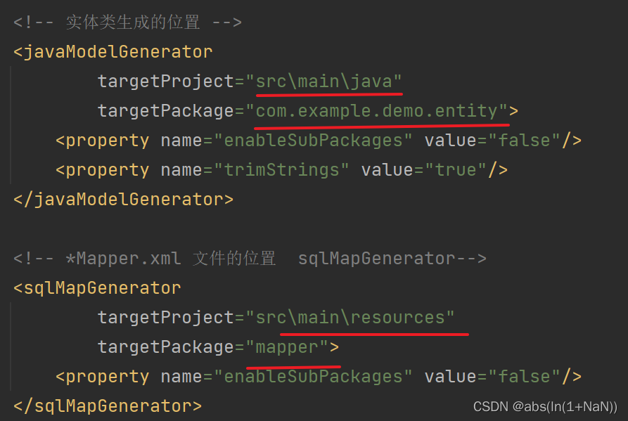 <!-- *Mapper.xml 文件的位置 sqlMapGenerator-->