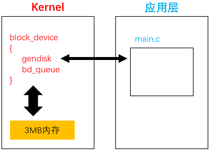 现在我们打算通过内存来模拟实现一个块设备,与上面介绍的流程相差无几,相当于将交互对象由块设备替换成了内存。