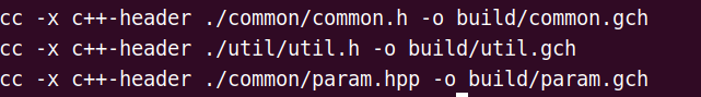 这里使用一个简单的工程来将不同目录下的 .h 文件编译生成 .gch 文件,并保存到 build目录下。当前测试工程下 common 和 util 目录包含 .h 或 .hpp 文件。