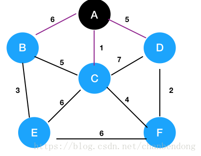 以上图为例,假设初始点为a,把连接A点的线标记为紫线