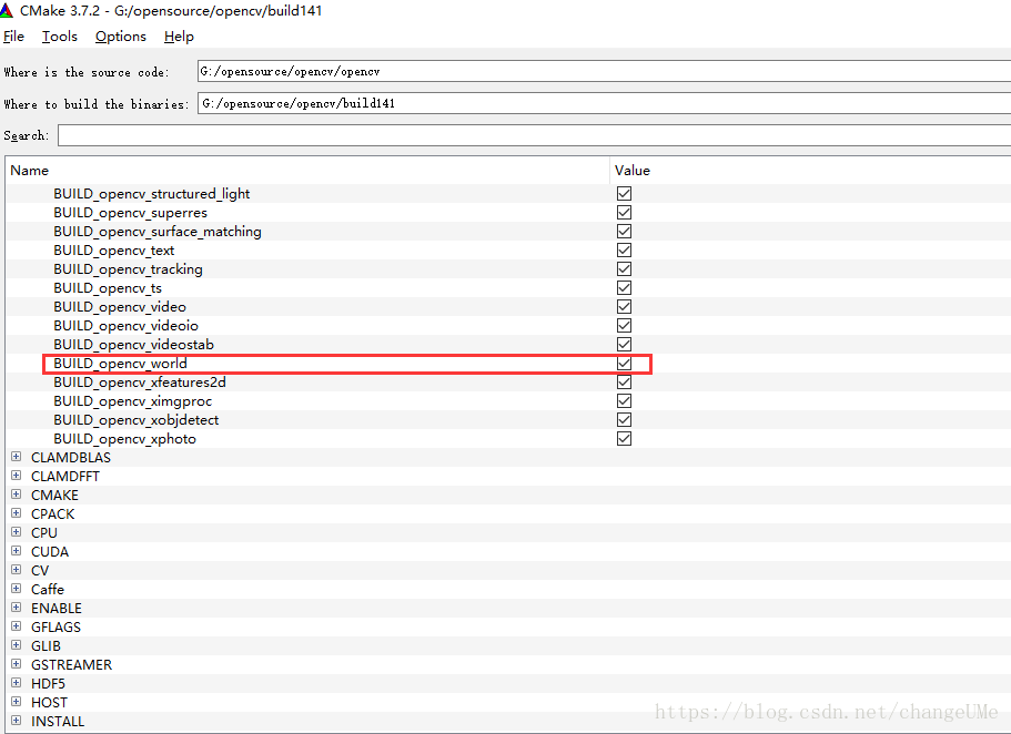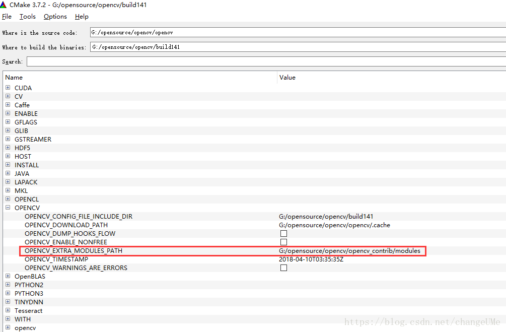 b,如果需要opencv_contrib中的内容,则设置如下选项