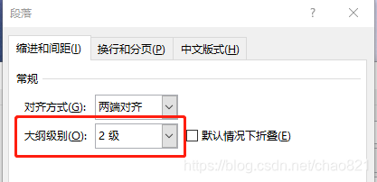 设置修改样式->“格式”->"段落",进行如下设置(大纲字段表示几级标题,可以自动生成目录):