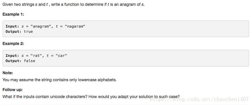 anagram就是变形词的意思。就是拥有同样的字符但顺序可以不同。两种办法,