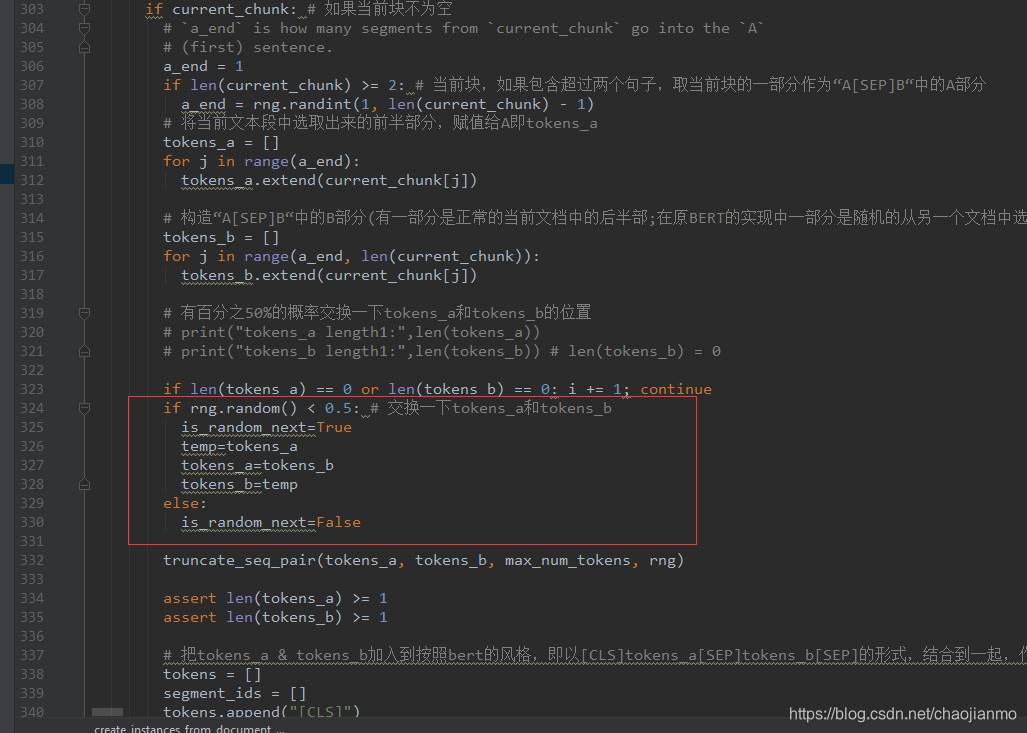 在create_pretraining_data.py的create_instances_from_document_albert函数中,负例的选取是调换正常顺序的两个句子。
