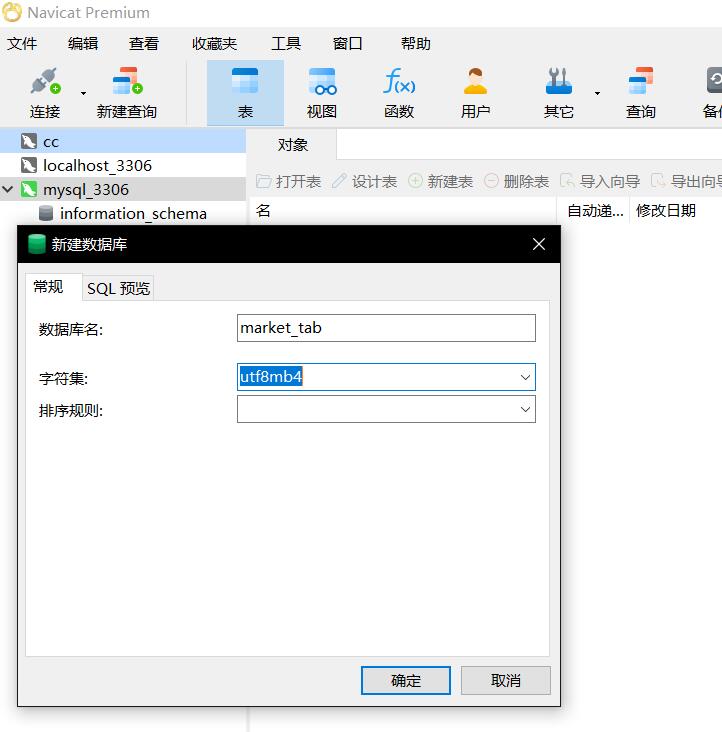 2.1.2.1 打开数据库连接并新建数据库market_tab