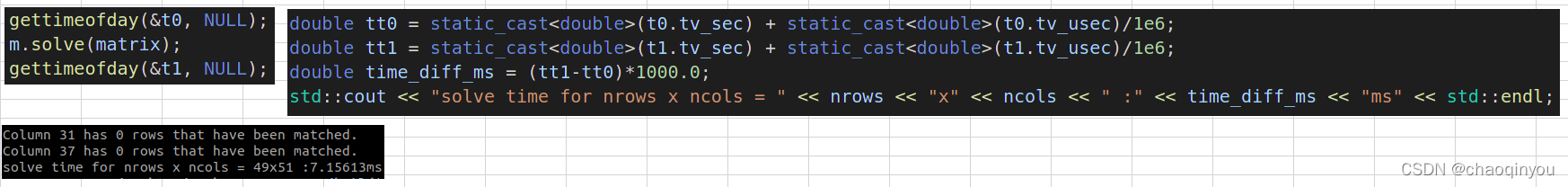 solve的时间:50x50的矩阵大概在10ms左右: