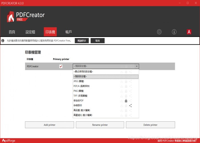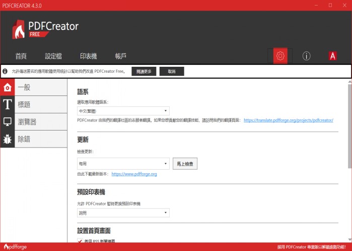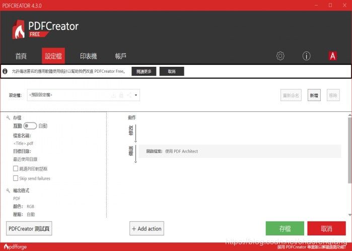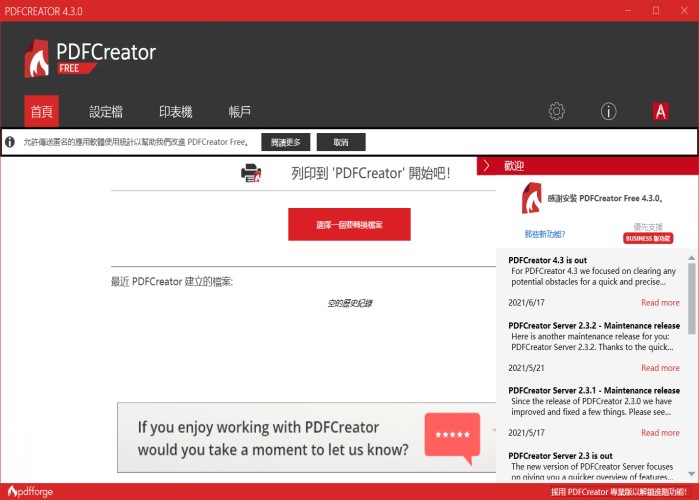 PDFCreator(PDF生成器)是一款优秀且开源的专业pdf转换器电脑版免费软件,提供了快速有效地完成工作所需的所有功能,允许用户将任何可打印的文档转换为普通PDF文档格式和专为电子文档的长期数字存档和保存而设计的一种特殊类型的PDF/A文档格式(PDF/A-1b、PDF/A-2b 和 PDF/A-3b),在应用程序内或直接从原始文档进行打印,同时用户可以将多个PDF文件合并为一个,也能将PDF转换为图像格式,例如 PDF 到 JPG、PDF 到 PNG 和 PDF 到 TIFF等,PDFCreator自动化功能有助于优化用户的个人工作流程,PDFCreator还具备数字签名和令牌功能,它们可以用作某些值的占位符,例如今天的日期、用户名等等,用户甚至可以向PDF/A文件中添加数字签名以证明真实性并验证文档在签名后未被修改,如果用户需要打印并发送许多类似的文档,数字签名和令牌功能则可以成为改进和加快工作流程的绝佳工具,自动保存功能更加方便,让用户拥有一台全自动的 PDF 打印机,可以跳过与应用程序的所有交互,并将具有预定义文件名的文件保存在用户的首选位置,此外大家可以在用户令牌的帮助下进一步自动化自己的工作流程 ,想知道pdf转换器哪个好用吗,威航软件园推荐大家务必要试试免费又开源的PDFCreator吧。(百度云盘分享密码:7a8k)
