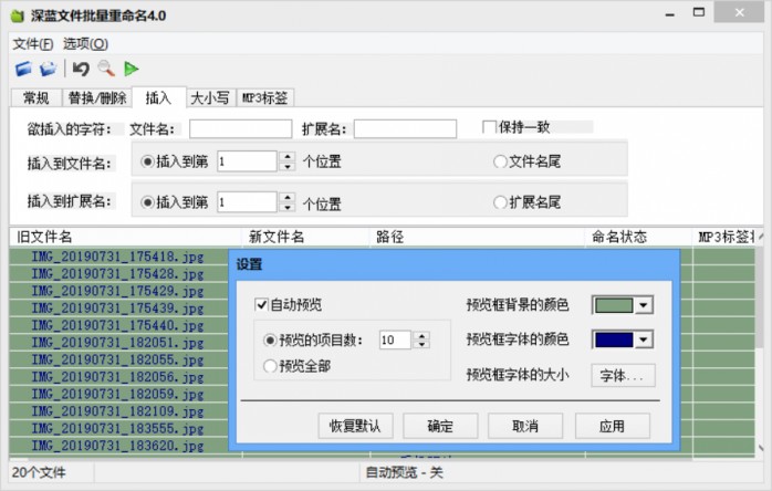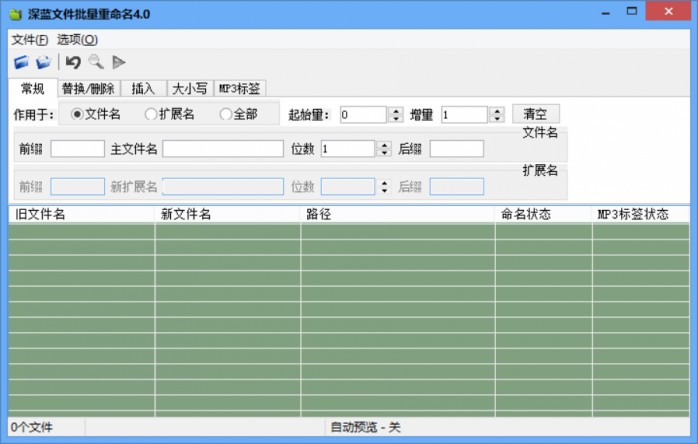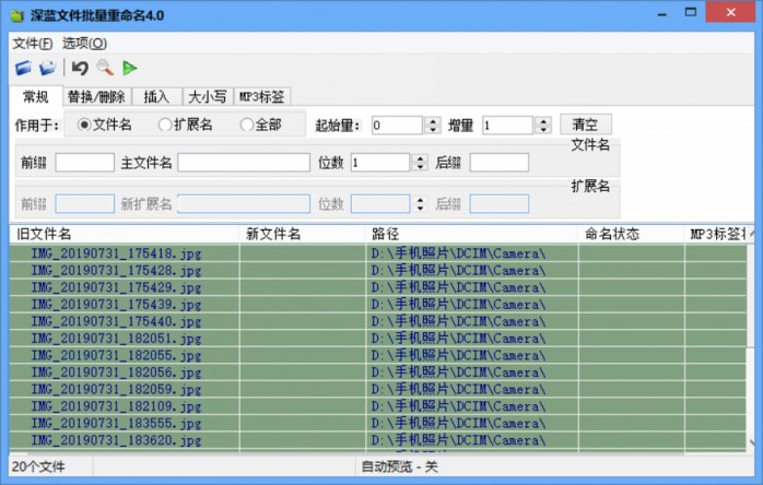 深蓝文件批量重命名工具是一款免费的批量文件重命名软件,提供常规、替换、大小写转换等多种功能,支持插入序号、替换字符等操作,方便用户快速批量修改文件名。其预览功能使用户在操作前能直观看到更改效果,尤其适合处理大量文件的重命名任务。