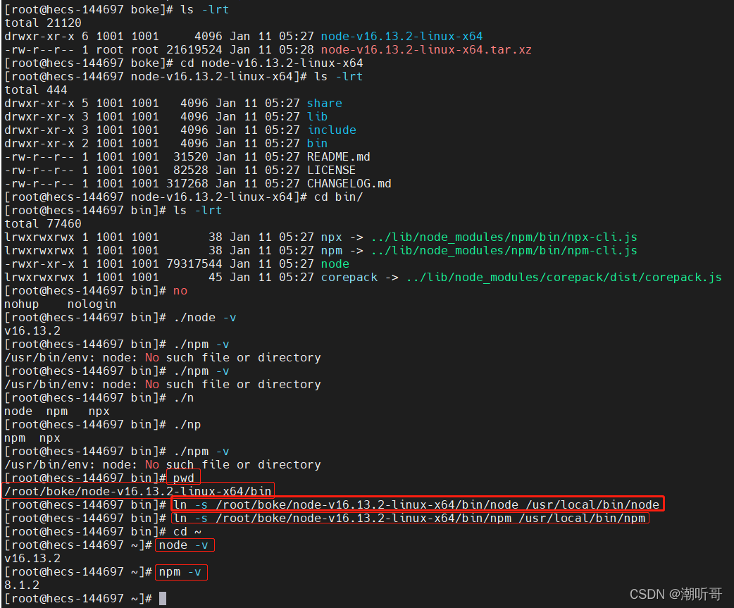 cd /root/boke/node-v16.13.2-linux-x64/bin