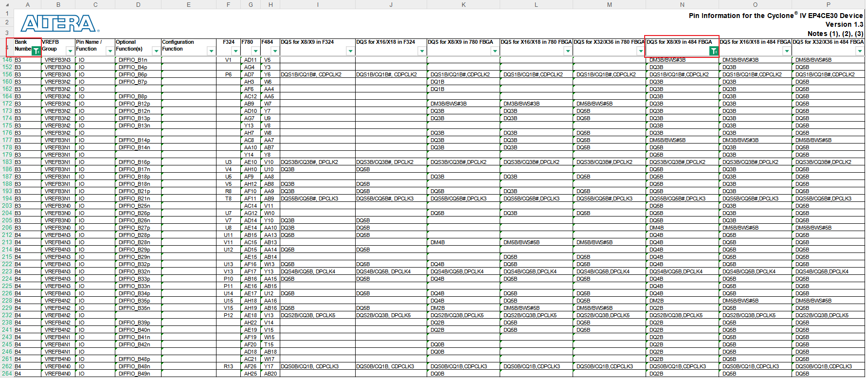 Cyclone® IV EP4CE30 设备的引脚信息 - XLS 格式