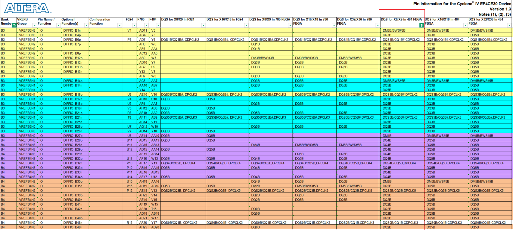 FPGA: DQ、DQS、DM序号相同的既是同组(底纹填充相同的为同一数据组)