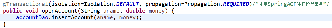 说白了这个是直接在对应方法上添加事务注解 @Transactional(isolation=Isolation.DEFAULT, propagation=Propagation.REQUIRED)