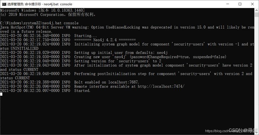 以管理员身份运行cmd,然后,在命令行处输入neo4j.bat console
