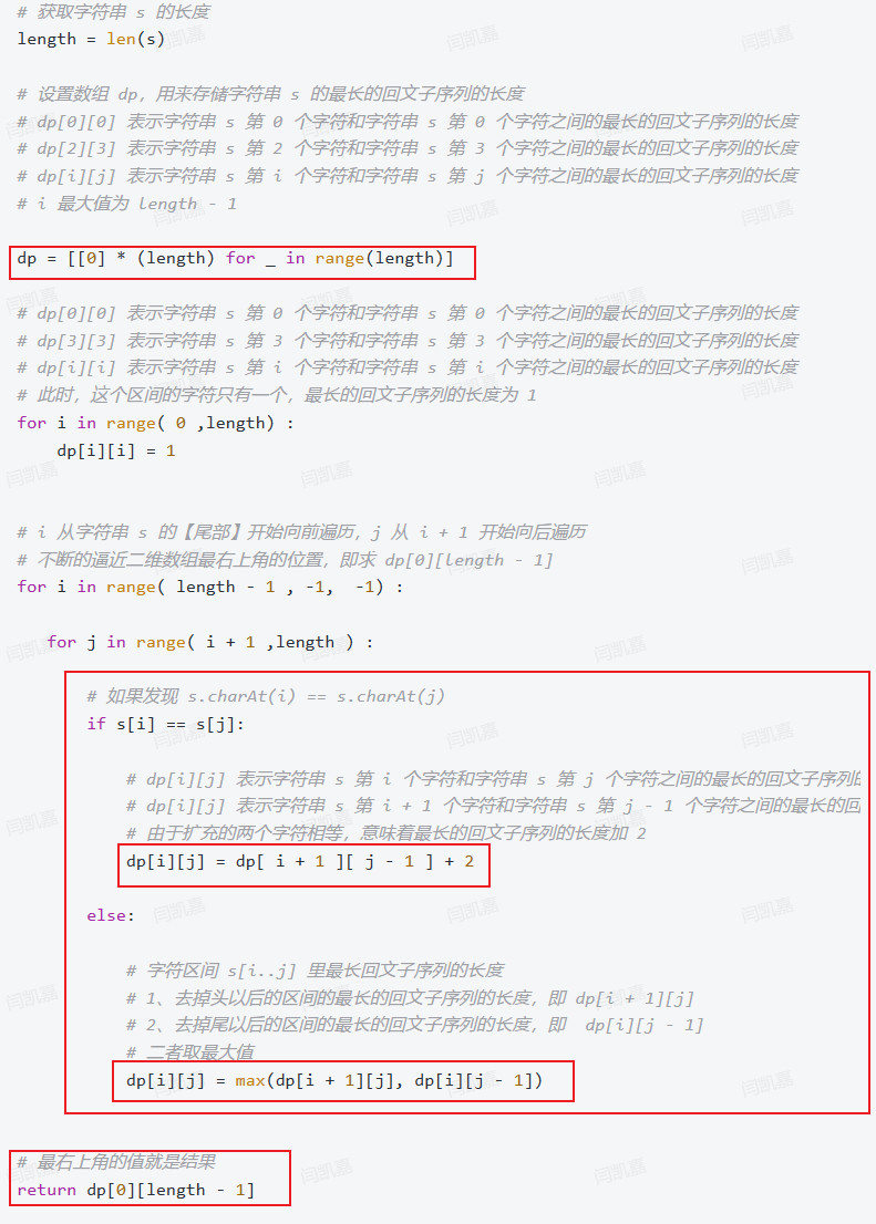 - dp数组定义为:设置数组 dp,用来存储字符串 s 的最长的回文子序列的长度