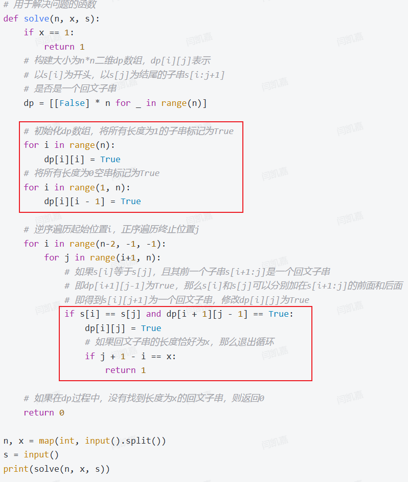 - 回文子串的问题,通常也可以使用DP方法来完成。虽然在本题中不能显著地减少复杂度,但用DP方法解决回文子串问题是必须要掌握的。本题可以视为LeetCode5. 最长回文子串的简单版。
