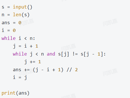 - 也可以贪心地解决问题,因为对于每一个01或10子串,只能染色一个字符,因此可以通过字符串中01或10子串的个数来进行计算。