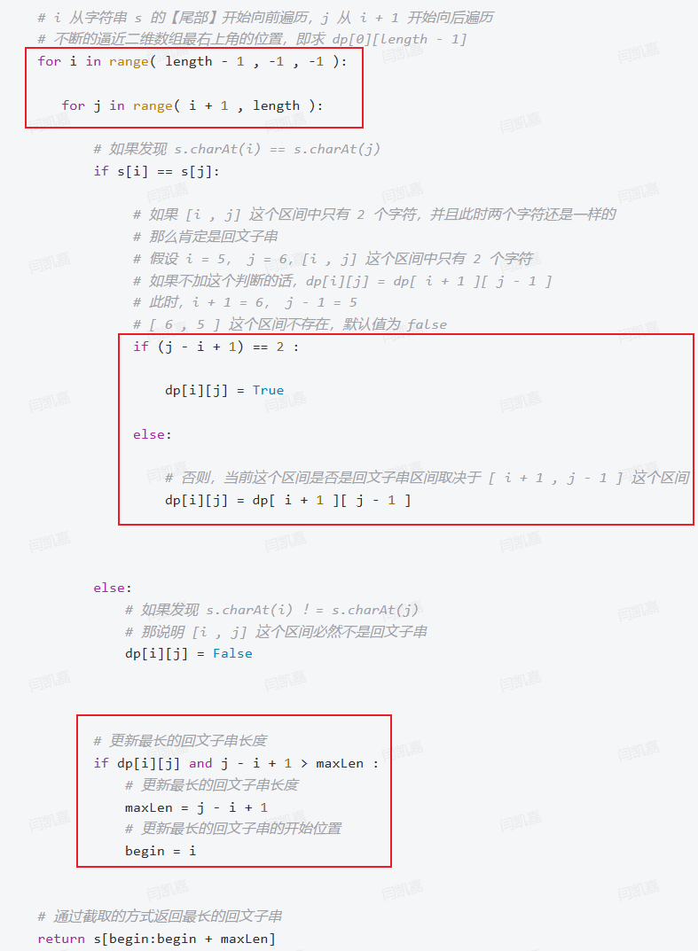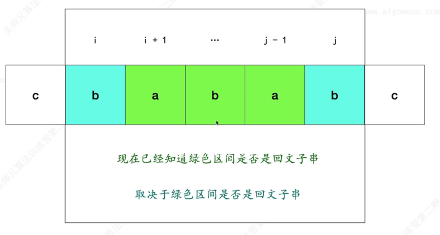 - i到j之间是否为回文子串取决于i+1和j-1之间是否为回文子串
