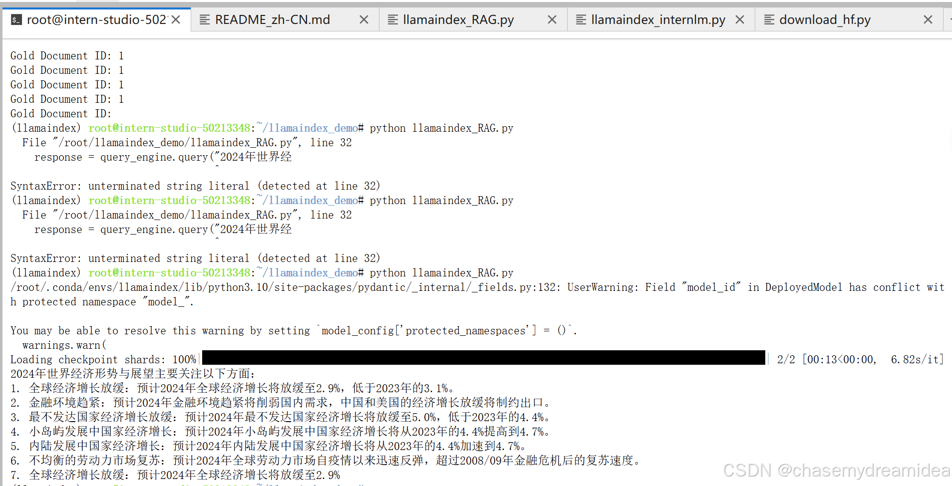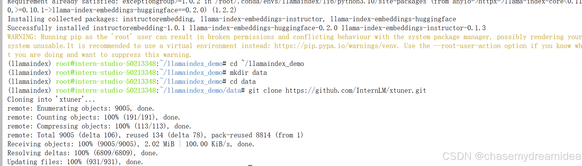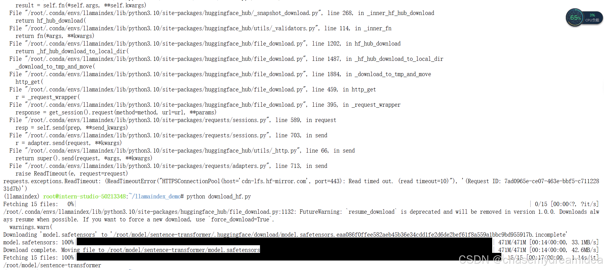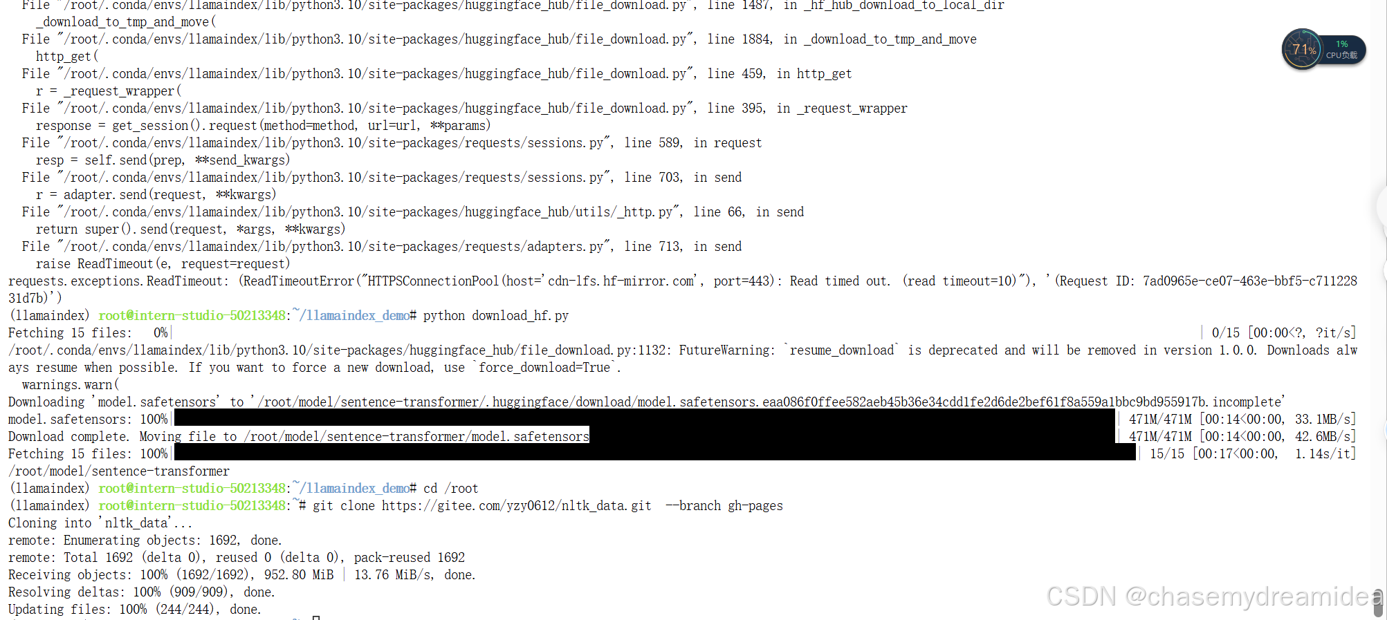 然后,在 /root/llamaindex_demo 目录下执行该脚本即可自动开始下载: