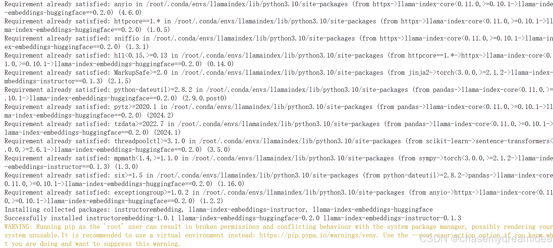 pip install llama-index-embeddings-huggingface==0.2.0 llama-index-embeddings-instructor==0.1.3