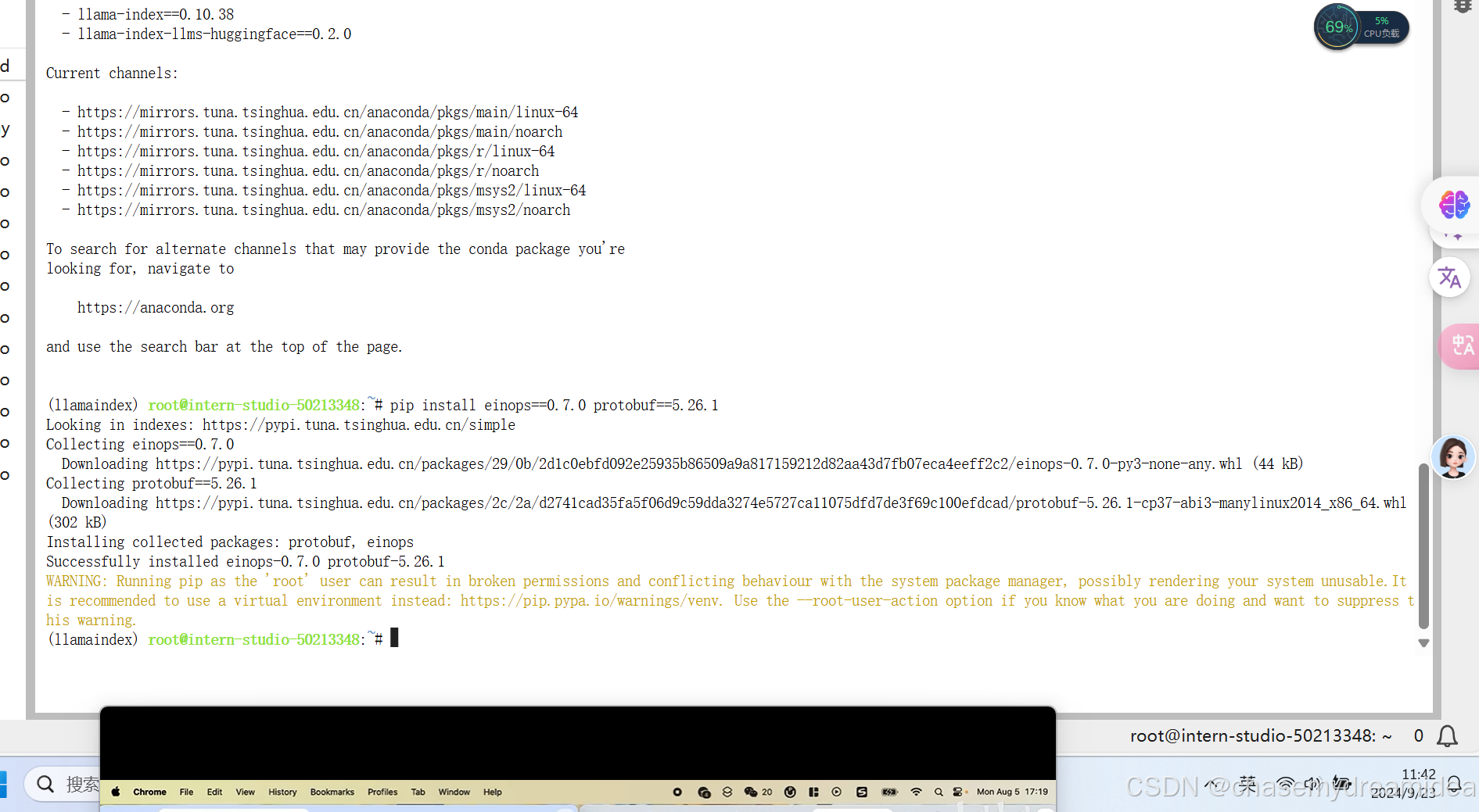 # 运行 conda 命令,激活 llamaindex 然后安装相关基础依赖 python 虚拟环境:
