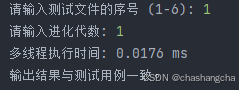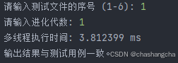 数,输出结果文件,并和测试用例的预期输出文件进行比对,输出是否一致以及运行时间。