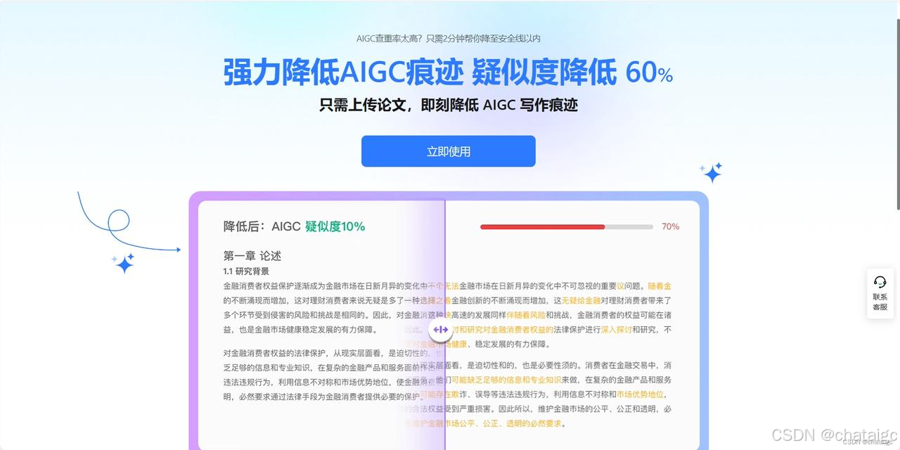 你是否正被AIGC论文重复率过高的问题折磨得焦头烂额?当借助AI完成论文创作后,AIGC降重成了横在你和顺利毕业之间的一道难关。一旦论文的AIGC疑似度超过30% ,就极有可能被判定为AI代写。这可不是小事,它意味着你将失去答辩资格,多年的努力可能就此付诸东流,毕业也会变得遥遥无期,所有的期待与规划都将被打乱。在交稿前,务必做好AIGC降重检查,千万别让这个问题毁了你的学术之路 ,这不介绍一个我的压箱底ai工具,让你稳稳当当的降低论文AI率,顺利毕业。