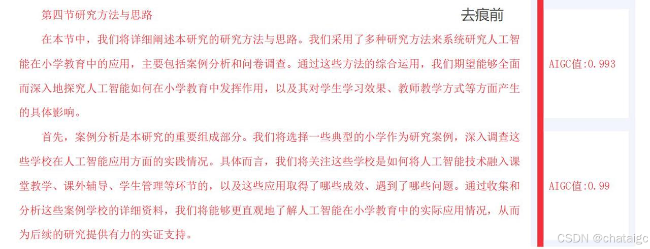 怕上面的例子不够让你信服,特地还找了文章一部分的片段aigc值降前后的差距,是不是已经感觉到了笔灵的神奇之处了,由红彤彤的变成了黑色,不用自己再一个个片段去降ai,节省了多时间去准备答辩之类的。