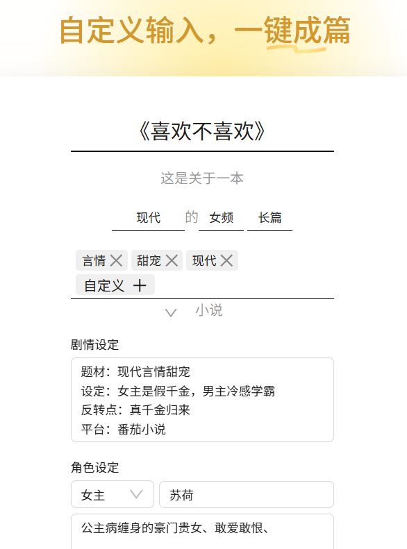 这次我直接用【AI写全篇小说】试了一把,自定义提示词: