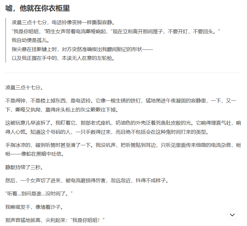 那道女声真的把氛围渲染得很好,出来的语气像真有人在警告男主。它能把僵硬的叙述变成彼此过招,看着让人感到紧张刺激,尤其适合短篇、桥段补戏。