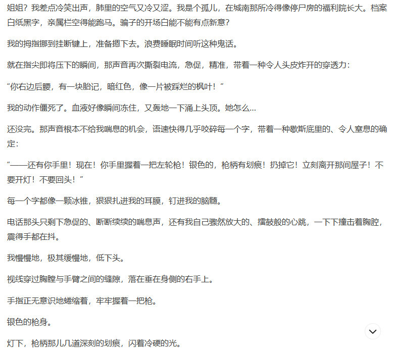 如果你想在细节和心理描写上更细腻,可以交给文心一言润色。