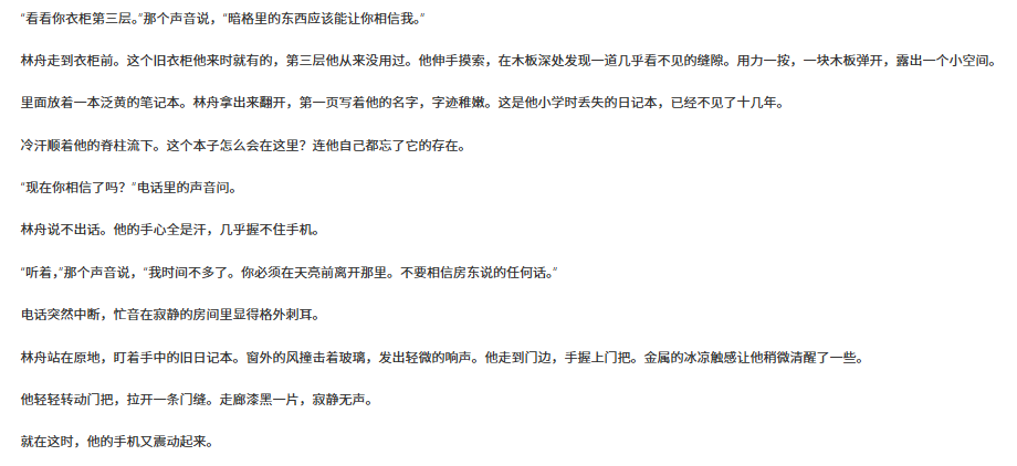 缺点是逻辑不太好,一下子埋了太多钩子,“十二岁的暴雨夜”“我离家上大学的日子”。看完都不知道这个阿宁可能是谁,读起来云里雾里的。