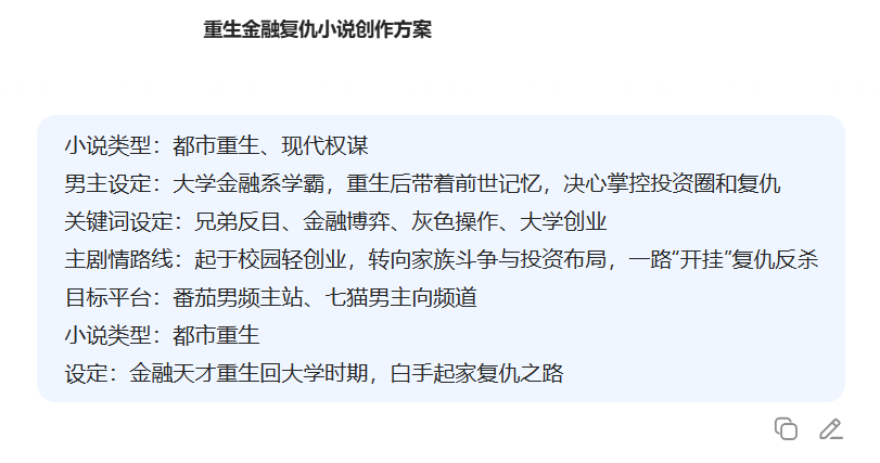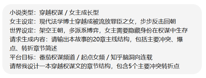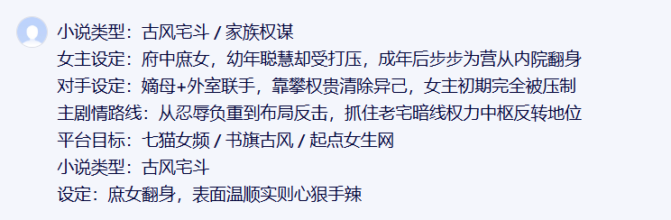 📌功能优势: ChatGPT最适合当“写作策划”,擅长规划设定、拆解章节结构、模拟平台编辑提问、预判设定bug,非常适合用来“投前查漏补缺”。