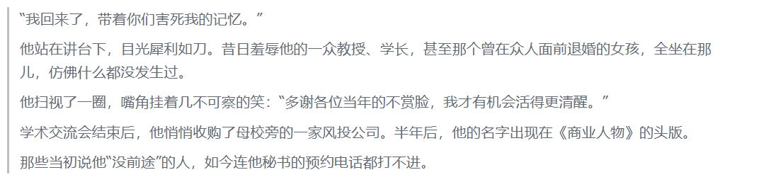 但缺点是文风偏理性,人物情绪弱,容易缺人设亮点。