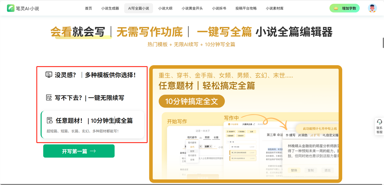 📌功能优势: 小说结构清晰、节奏抓得准,适合搭建长篇爽文主线。