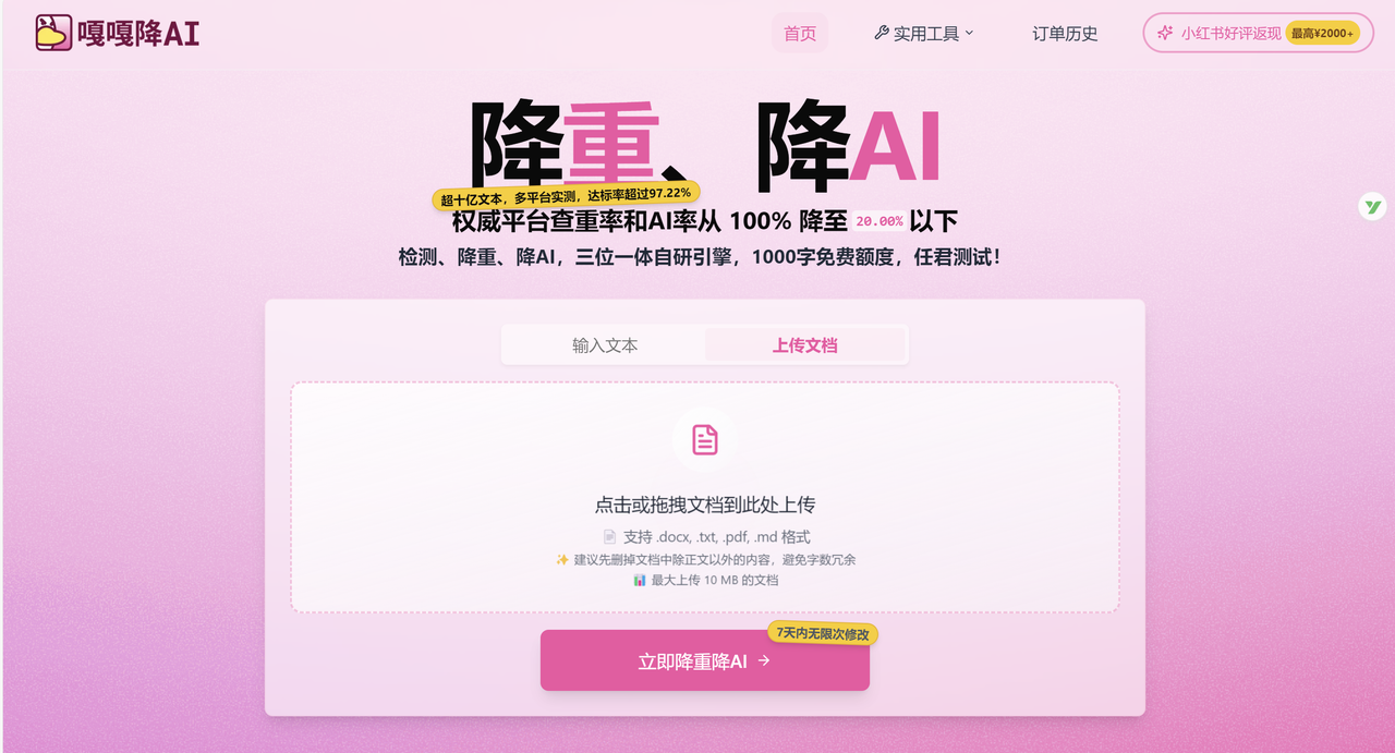 新增的降AI功能效果也不稳定,很多次AI率就降了个位数,格式更是别提了,100%完美不保留!气得我...