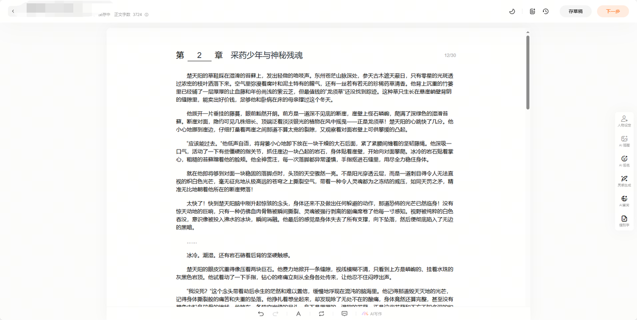 以前我写一章,可能还要慢慢琢磨词句,现在直接一键生成,80% 的内容直接能用,只需要稍微改一改语感。