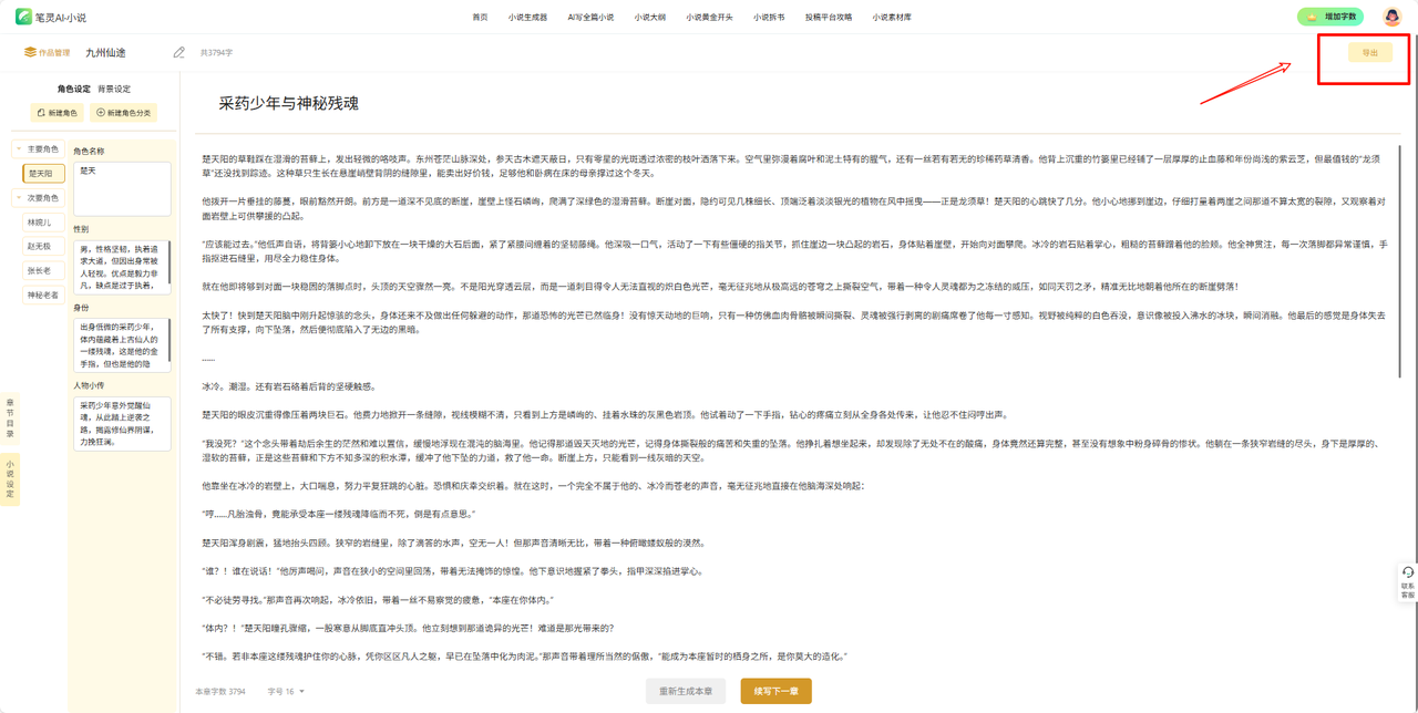 生成完小说,你可以直接导出文档,