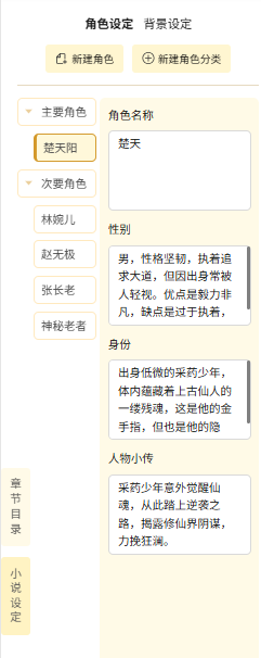 而是围绕你设的大纲、人物设定,从头到尾跑完完整的长篇小说。