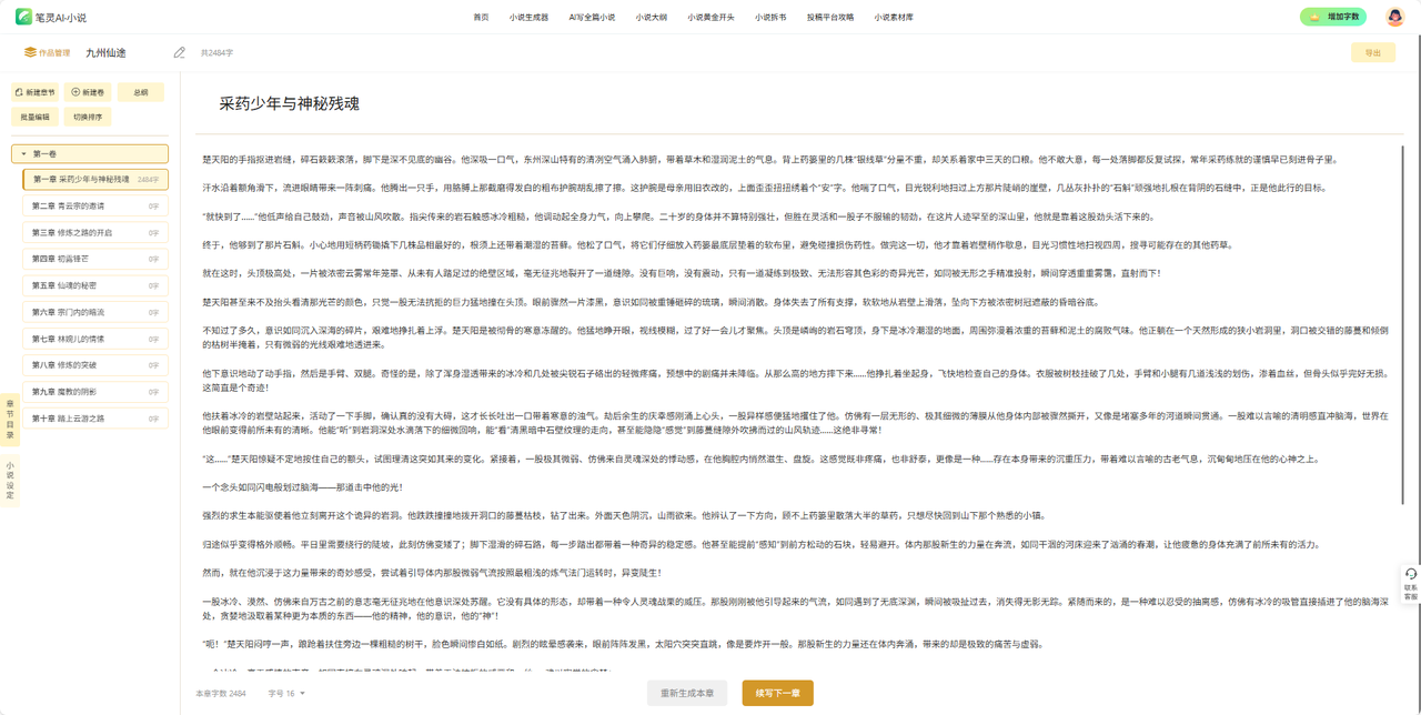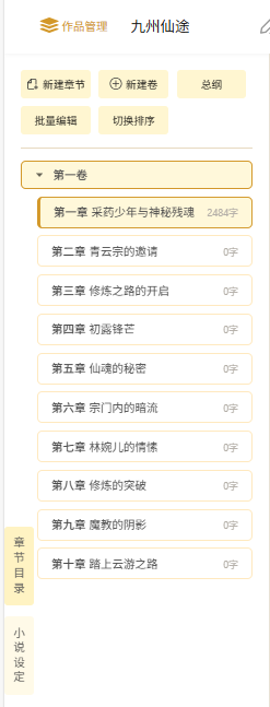 像我这本《九州仙途》,第一卷直接生成了 10 章: