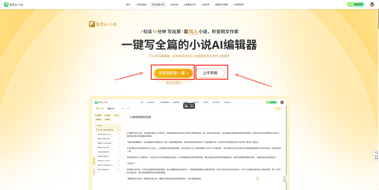这是市面上少有的、专门做小说全篇生成的 AI 工具——笔灵。