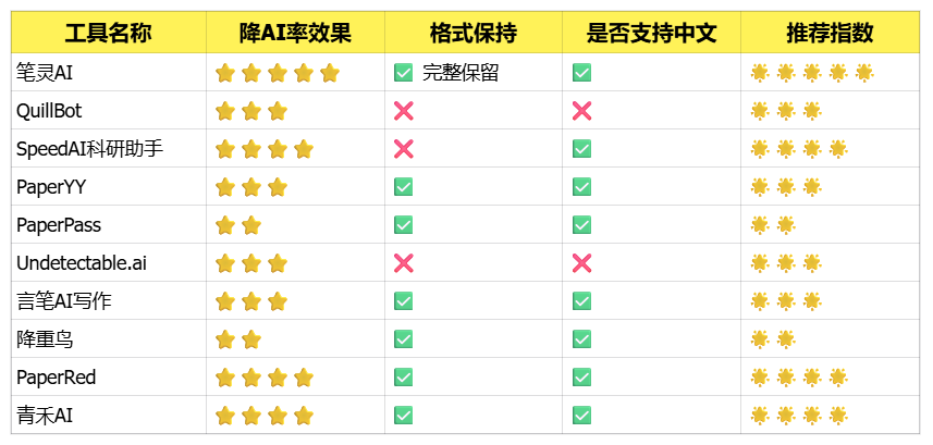 📊 降AI工具对比速览表