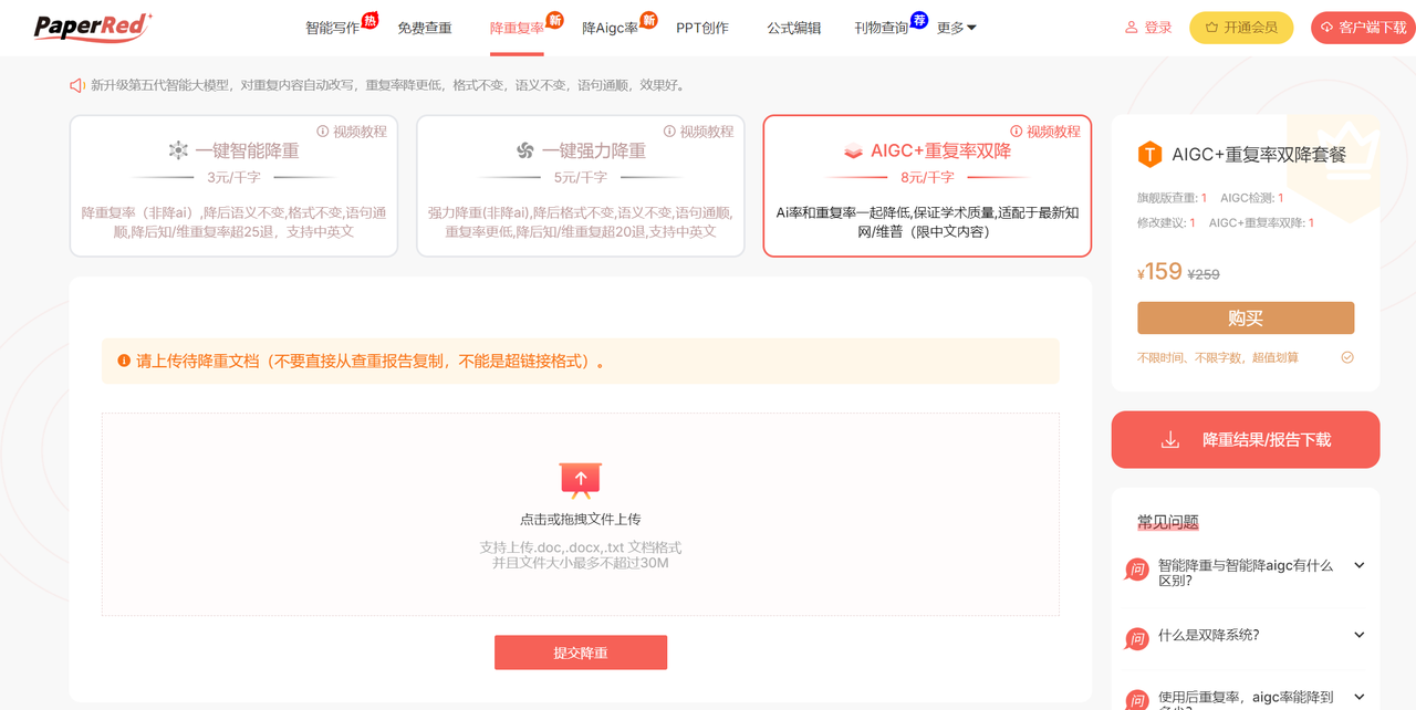 我处理过长文格式保留好。直接提交没问题。但有时降不够彻底。需要二次处理。价格不贵性价比高。算法针对中文优化。本地学生用着顺手。常写中文论文可以考虑。