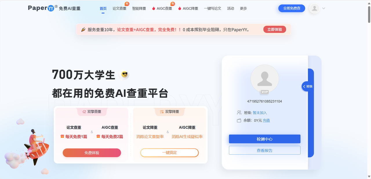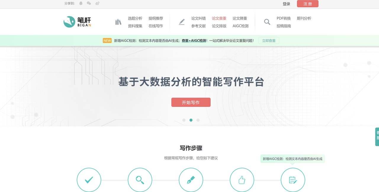 老牌的查重网站了,大家应该很熟,现在也紧急上线了论文降aigc功能。