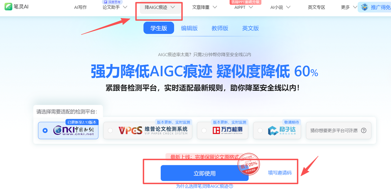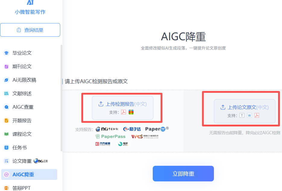 这个平台功能很丰富,也推出了降AIGC功能,优点是可以直接上传AIGC检测报告,系统会针对高风险段落重点处理,这个逻辑比较合理。而且界面设计专业,操作流程清晰,第一次使用也能快速上手。