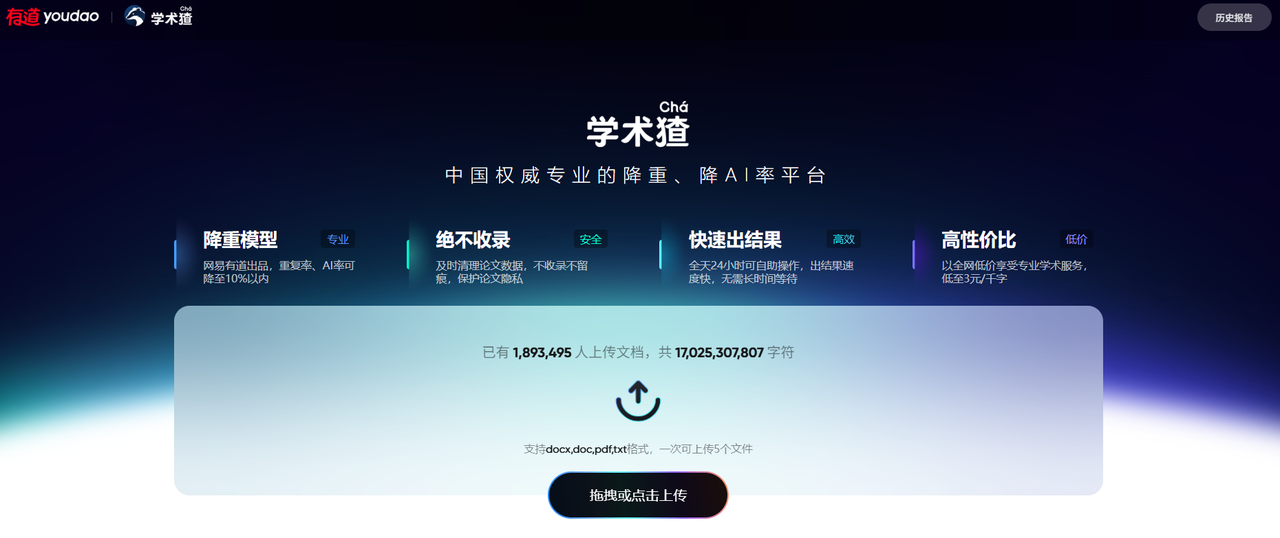 学术猹是有道出品的降AI工具,一键上传即可,界面做的也很简洁,它的技术是自研的语义模型,就是价格有点贵,8元/千字,可以用来给字数较少、核心的段落降AI
