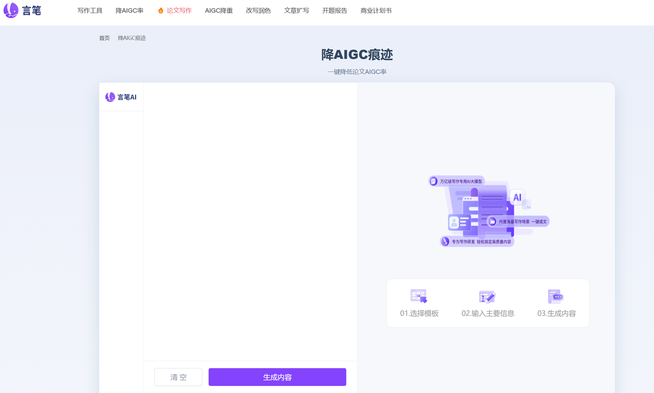 六、言笔AI:逻辑重组型降AI工具