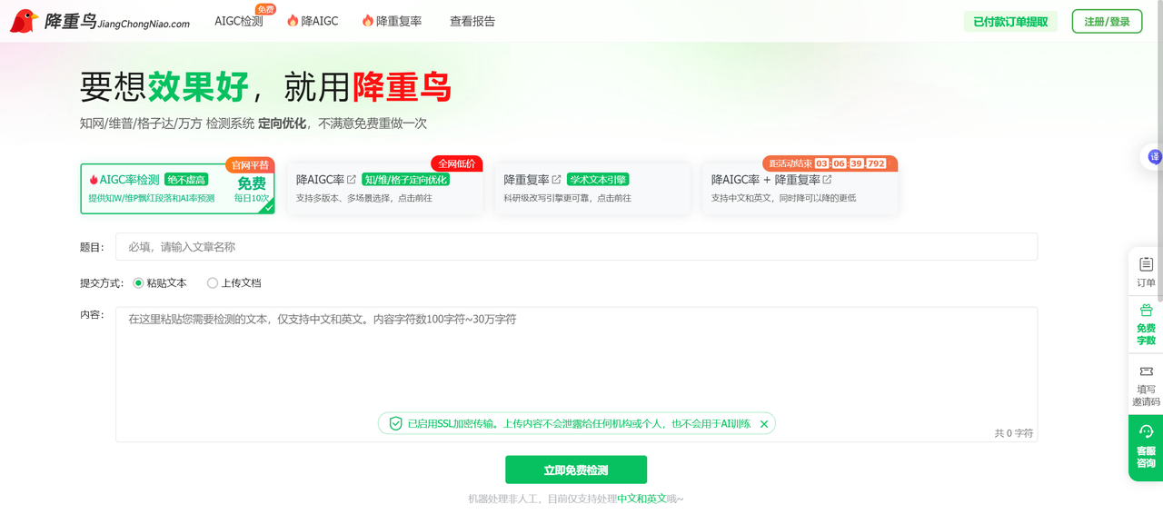 再加上它能保留原格式排版(图表、页眉页脚都不动),改完直接能交。 算法还支持知网、维普、万方三大平台,实时更新,这点真的很关键。 价格是 3元/千字,比很多平台便宜一半,对学生来说够良心。